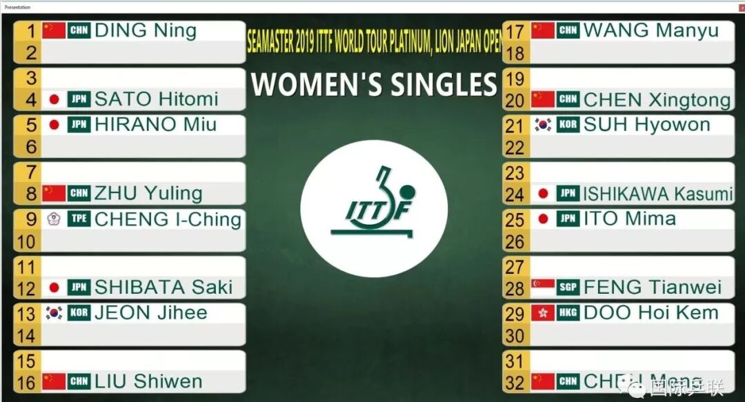 2/4区:郑怡静(中华台北)、芝田沙季(日本)、田志希(韩国)、刘诗雯(中国)